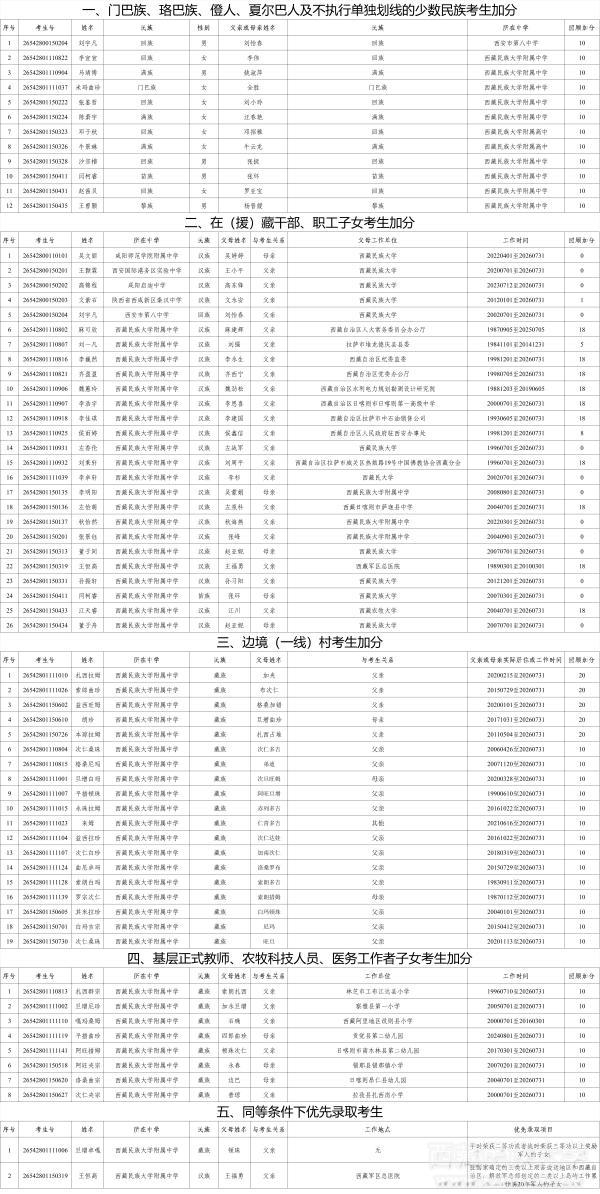 2026年普通高考西藏民族大学考区考生 享受政策加分名单公示